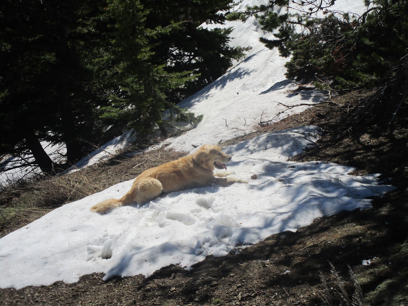 There were snow drifts across the trail above the cliffs, but I cut those by going off trail and using the scree on a ridge line.